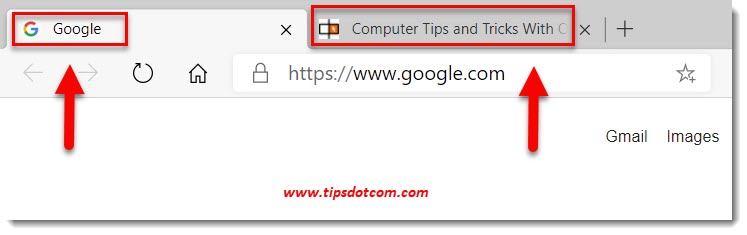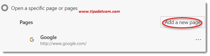 You may have noticed that you can add several pages as your Edge homepage. Let’s say for example that you want www.google.com to open as your new Microsoft Edge homepage, but you also want to have this site, www.tipsdotcom.com open at startup.