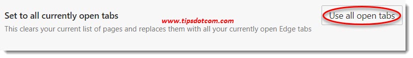 Now click on the option to “Use all open tabs” next to “Set to all currently open tabs”.