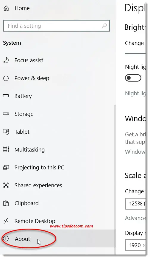 Click “About” to proceed. Now Windows will display a whole list of details and information about your computer on the right hand side of the window, including the Windows 10 version that you’re currently using.