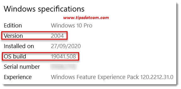 In the example image above you can see that it’s running Windows 10, version 2004, OS build 19041.508. You’ll also find an “Experience” number, in this case Windows Feature Experience Pack 120.2212.31.0.